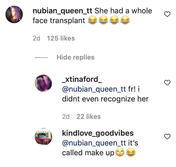 One commenter surprised at NeNe’s appearance, wrote, “She had a whole face transplant.” Another fan responded, “fr! i didnt even recognize her.”